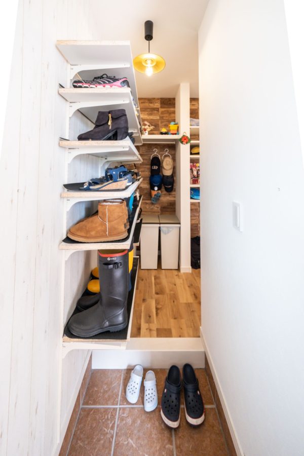 玄関収納、リビング収納、廊下、洗面収納などたっぷりの収納スペースがあるお家。