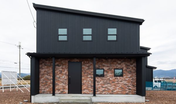 黒い外壁にレンガ調のタイルを一面に使い、ブルックリンスタイルたっぷりの外観。