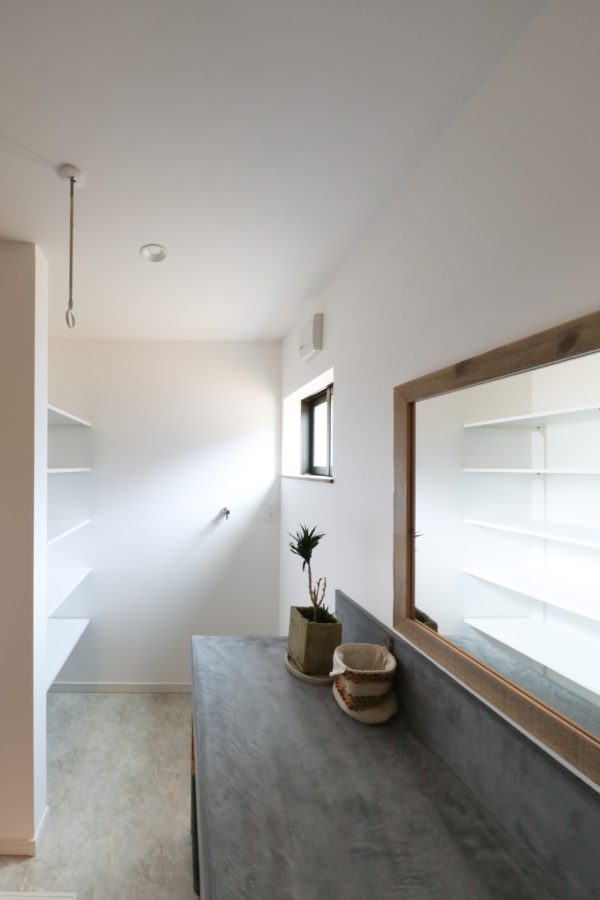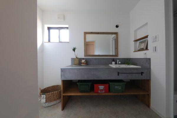 洗面台は広々したモールテックス仕上げに。