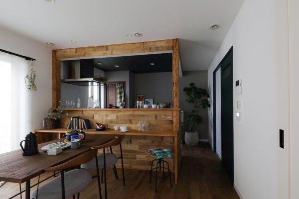 木のぬくもりを感じるカフェスタイルのキッチンがおしゃれなお家。