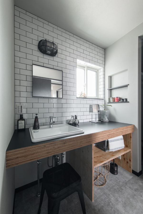 オリジナル造作洗面台や洗面脱衣室からつながるファミリークロークは家事楽な動線が◎